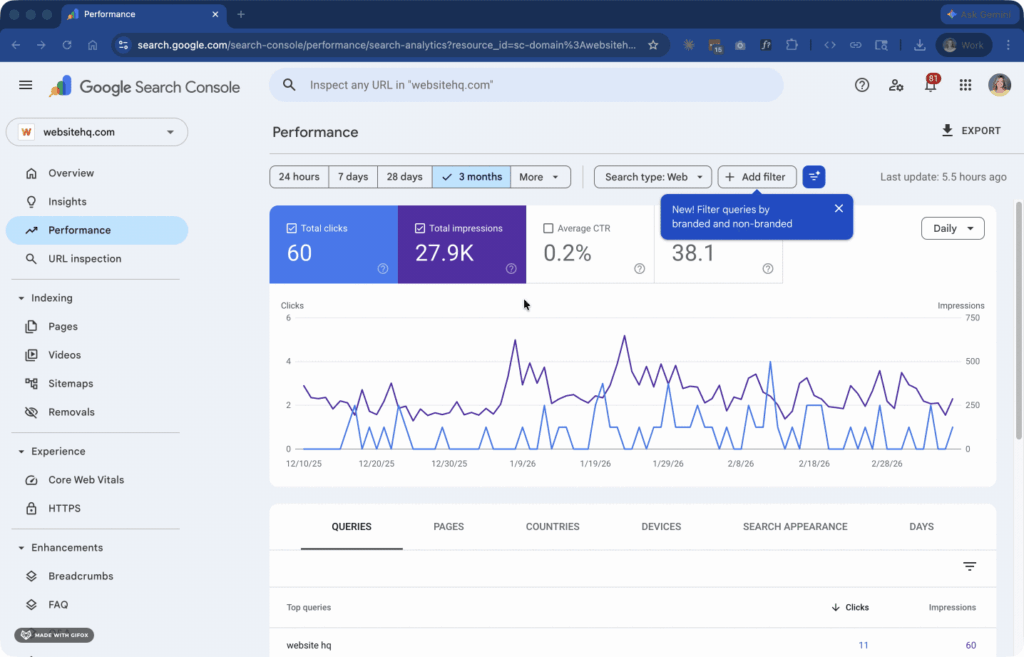 - Google Search Console now allows filtering performance data by branded queries and non-branded queries.